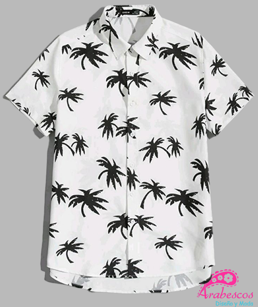 Camisa Playera Blanca Palmas Negras